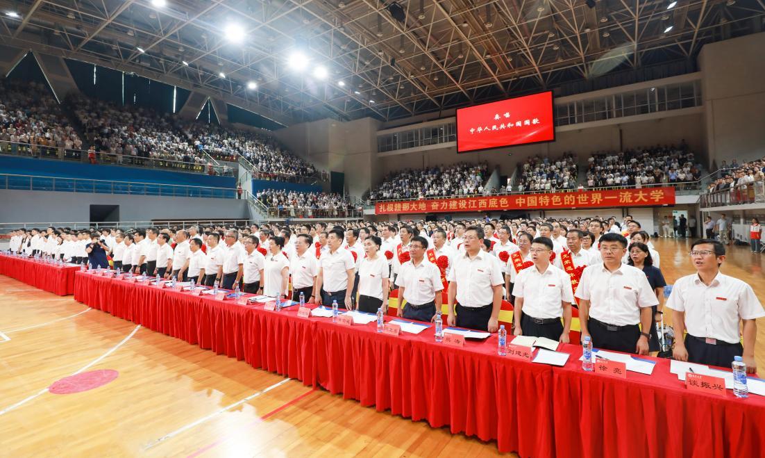 本网讯(记者朱文芳)“以教育家精神铸魂强师,谱写教育强国建设华章。”9月10日,学校召开庆祝第41个教师节表彰大会暨高质量发展推进会,进一步铭记关怀、牢记嘱托,认清形势、统一思想,找准方向、明确任务,激发动力、凝聚合力,以时不我待、只争朝夕的紧迫感形成攻坚“双一流”、推进高质量发展和建设“江西底色中国特色的世界一流大学”强大力量。