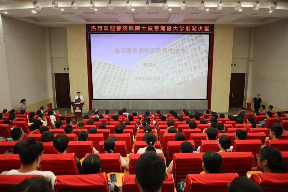 本网讯(生命科学学院)9月4日,中国科学院院士、中国科学院遗传与发育生物学研究所曹晓风研究员应邀做客南昌大学“前湖讲堂”第三十五期,以《表观遗传调控及获得性遗传》为题作学术报告。副校长葛刚主持报告会。