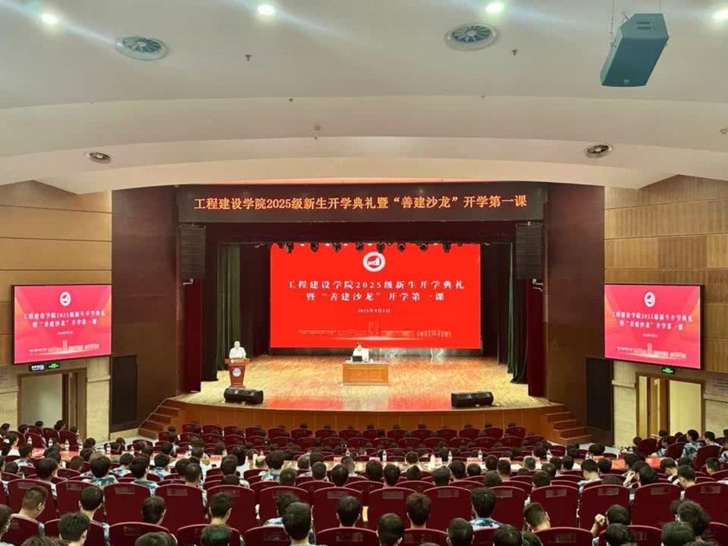 本网讯(工程建设学院)9月2日上午,工程建设学院2025级新生开学典礼暨“善建沙龙”开学第一课在音乐厅举行。中国工程院院士周创兵教授,国家级海外高层次人才文丕华教授,学院党政班子成员、高层次人才、各系负责人、教师代表、全体辅导员以及2025级全体本科生与研究生新生代表参加典礼。