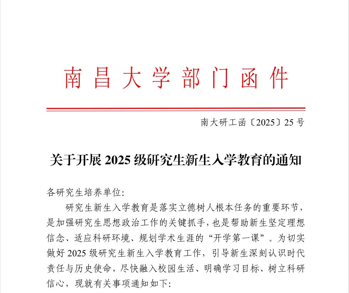 针对研究生新生,学校则量身打造了“五大方面、二十条内容”的专属入学教育方案,包括“理想信念与价值观教育”筑牢思想之魂,“校史院情与爱校荣校教育”厚植归属感,“培养、学位与日常管理教育”明确成长路径,“科学道德与学风建设教育”涵养学术品格,“安全教育”守护成长底线。通过系统化设计、模块化实施、浸润式传递,着力引导研究生新生成长为“又红又专、全面发展、可堪大任”的高层次拔尖创新人才,为学校加快建设“江西底色中国特色的世界一流大学”注入新生力量。