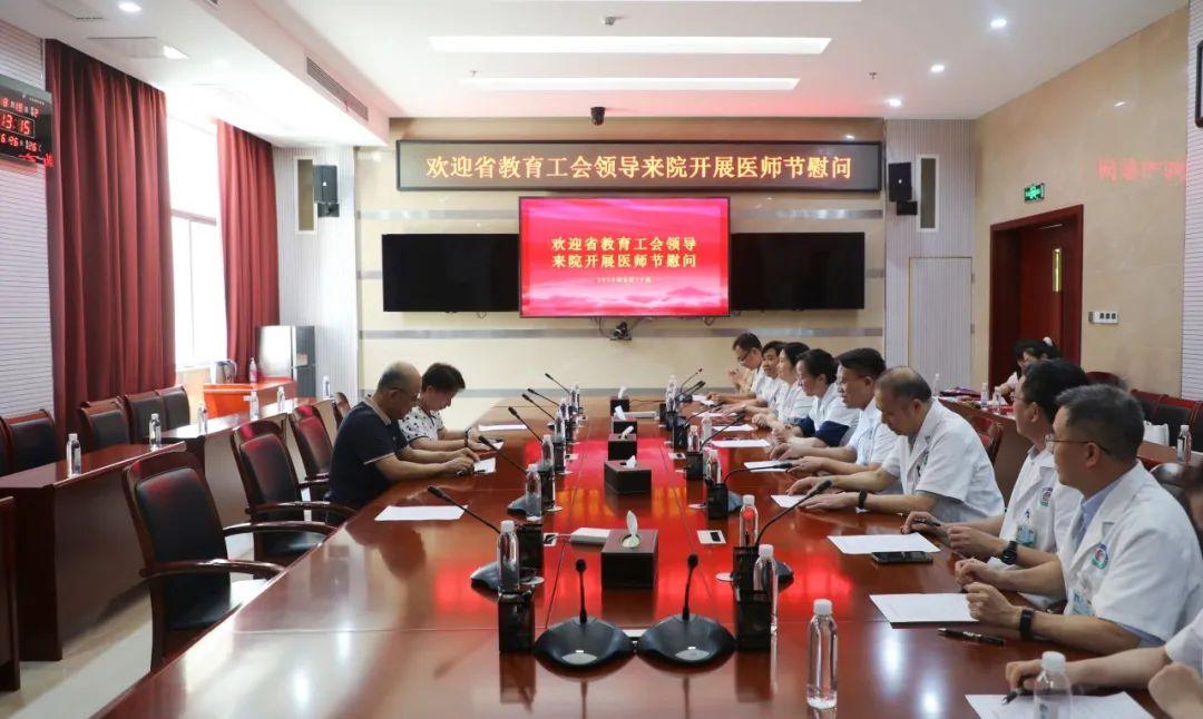 本网讯(南轩)8月19日,正值第八个“中国医师节”,省总工会二级巡视员、省教育工会党支部书记蒋云国,省教育工会主席、一级调研员宋懿非一行到我校附属医院走访慰问,为工作在一线的医务人员致以诚挚问候和节日祝福。