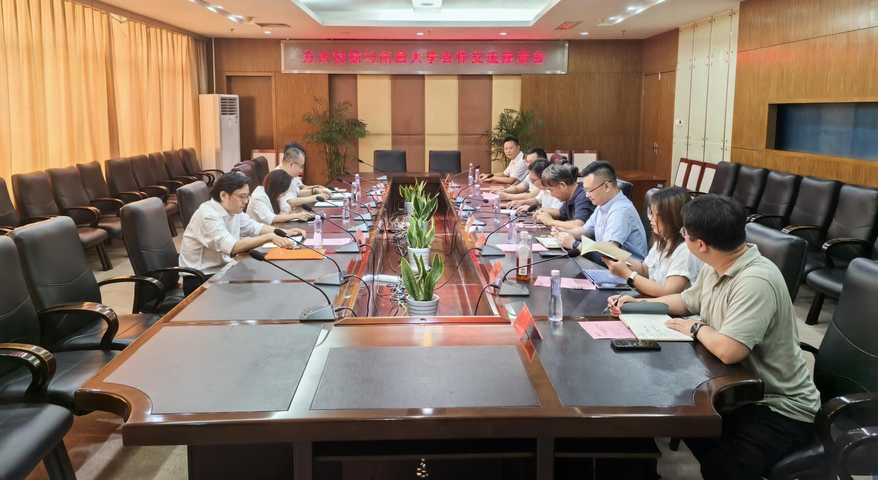 王立对詹柏丹一行来校调研表示热烈欢迎,并介绍了南昌大学的历史沿革、办学规模、学科建设等情况。他表示,方大特钢作为行业内领军企业,在科技创新、绿色发展等方面成绩斐然,方大特钢主体产业与南昌大学优势学科高度吻合,期待以本次交流为新的起点,深化双方在科研创新、人才引进和平台共建等领域的务实合作,共同谱写携手发展、互利共赢的新篇章。