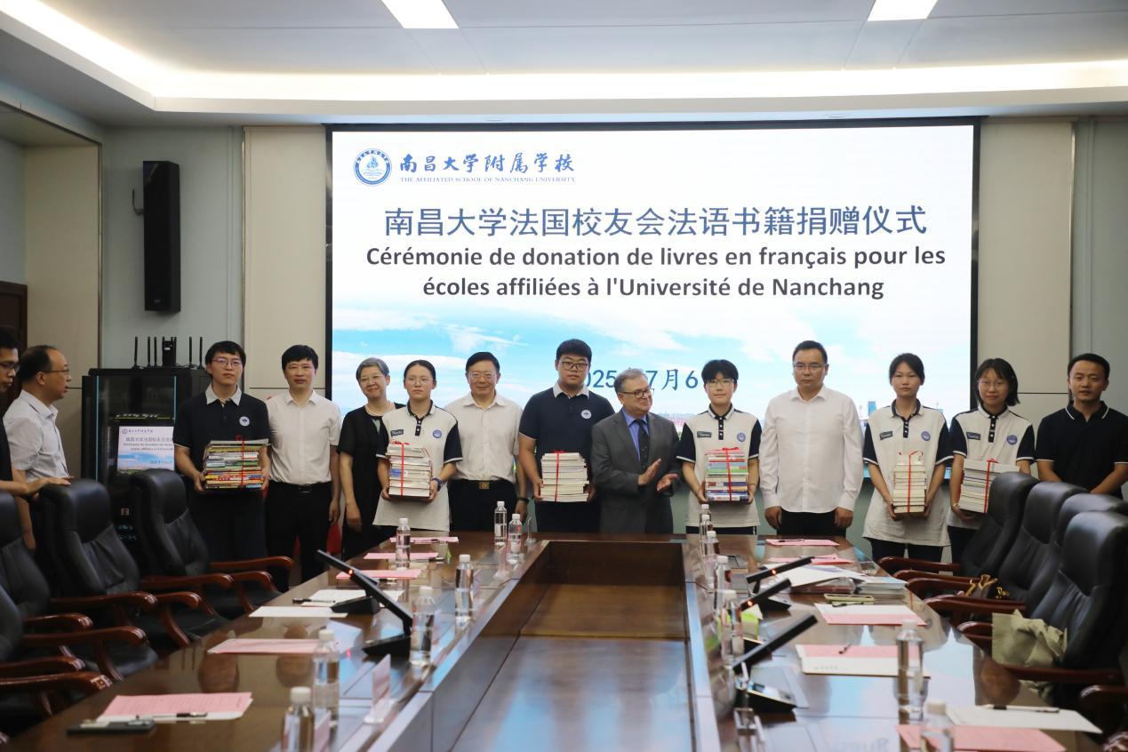 活动上,纪蒙田、罗嗣海、王立、江西省教育厅国际处一级调研员彭钢、江西省欧美同学会秘书长刘海、江西省侨联海外联谊和经济科技部副部长魏梦霞等嘉宾向学生代表捐赠法语书籍,1200余册精选法语读物正式入驻南昌大学附属学校图书馆。罗嗣海、纪蒙田共同为“南昌大学中法国际人才基地”揭牌。