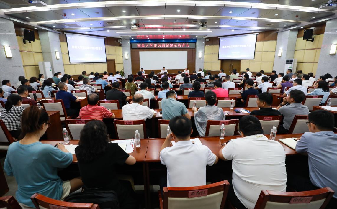 本网讯(记者涂金凤)7月2日上午,学校召开正风肃纪警示教育会,深入学习贯彻习近平总书记关于加强党的作风建设的重要论述和中央八项规定及其实施细则精神,认真落实党中央关于深入贯彻中央八项规定精神学习教育的决策部署和省委工作要求,学习贯彻全省正风肃纪警示教育会精神,进一步压实管党治党责任,营造风清气正的政治生态和育人环境,为建设“江西底色中国特色的世界一流大学”提供坚强作风保证。