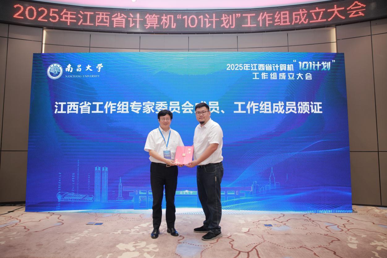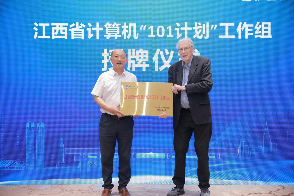 大会举行了授牌仪式,約翰·霍普克洛夫特为南昌大学江西省计算机“101计划”工作组建设单位授牌;胡振江为江西省计算机“101计划”工作组成员颁发了聘书。