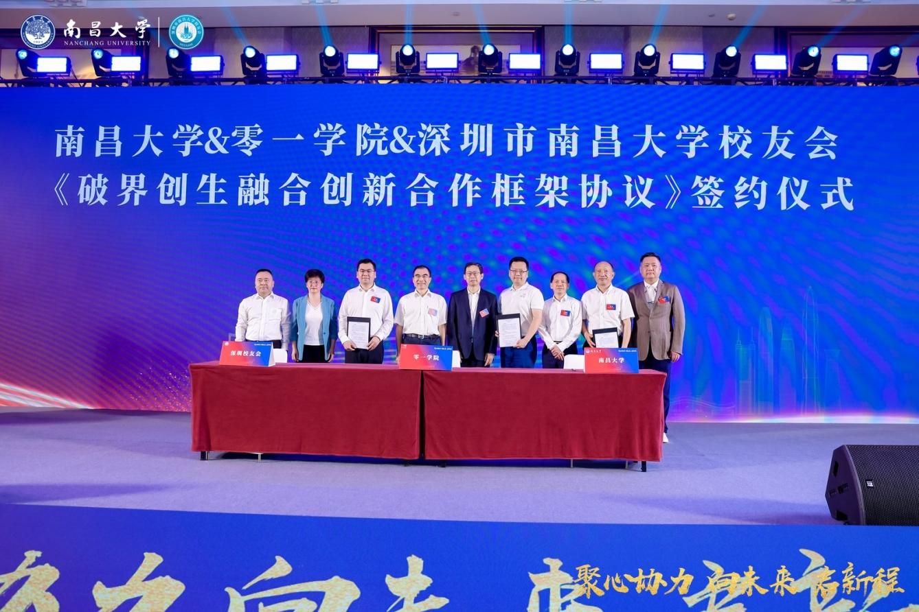 会上,还举行了《破界创生融合创新合作框架协议》签约仪式,葛刚代表学校与深圳零一学院院长助理车滨杰、深圳市南昌大学校友会轮值执行会长张磊分别代表三方签约。