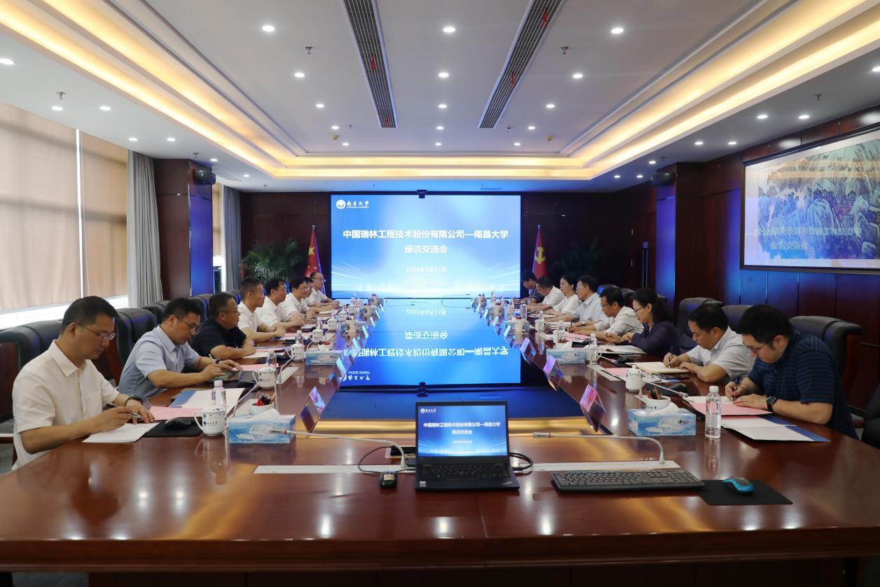 本网讯(记者 朱文芳)6月24日上午,中国瑞林工程技术股份有限公司党委书记、董事长章晓波,党委副书记、总经理吴润华,党委委员、工会主席文哲一行来校座谈交流。校党委书记罗嗣海,党委常委、统战部部长、人事处处长谈振兴出席座谈会。