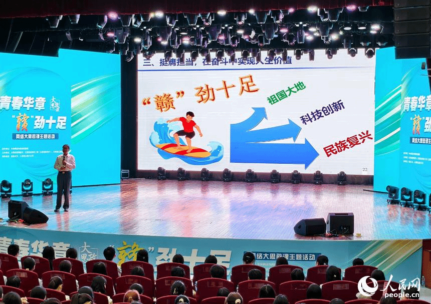 当前,江西这片承载红色基因的热土,正迎来高质量发展的关键机遇期,为青年施展才华提供广阔舞台。课堂尾声,谢明勇以满怀期许的话语激励广大学子:“以‘赣’劲十足的昂扬姿态,将青春华章镌刻在祖国广袤大地,书写在科技创新的奋进征程,融入民族复兴的伟大事业。”