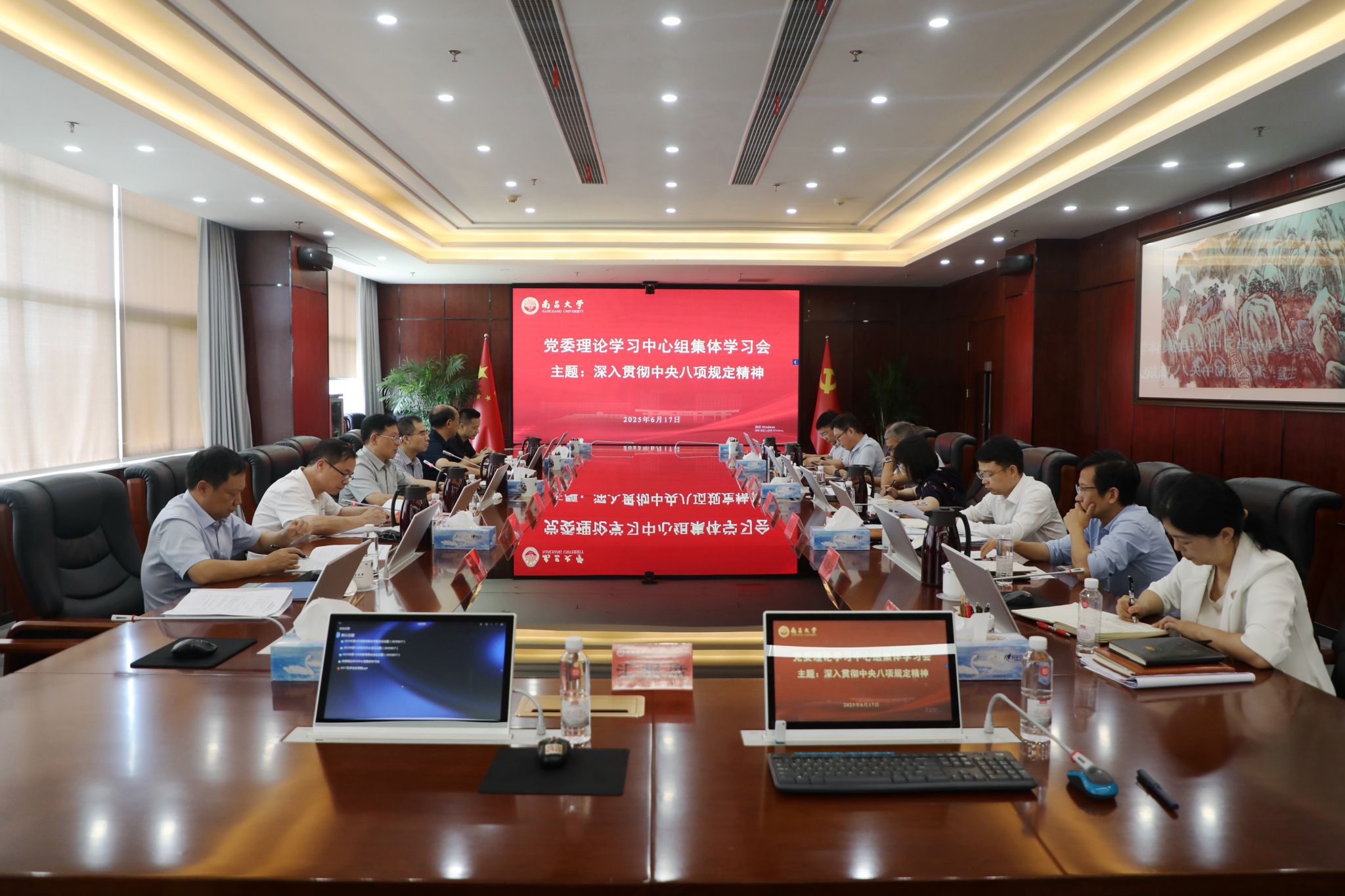 本网讯(记者朱文芳)6月17日上午,学校召开党委理论学习中心组集体学习会,深入学习领会习近平总书记关于深入贯彻中央八项规定精神的重要论述,聚焦突出问题、根源症结,坚持靶向发力、系统施策,动真碰硬抓好整改整治,推动学习教育走深走实,以作风建设的新成效引领和保障学校事业高质量发展。校党委书记罗嗣海主持会议并讲话,校长陈晔光院士列席会议。