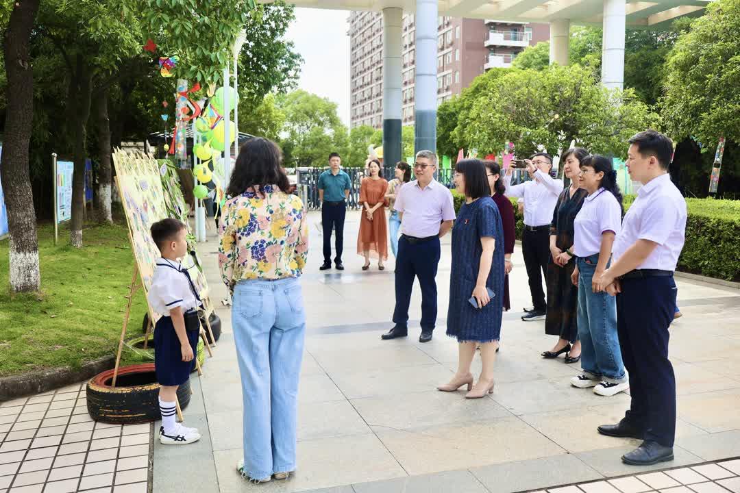 平卫英一行来到孩子们中间,与他们亲切交流,饶有兴致地聆听前湖幼儿园的小小解说员们介绍自然课程以及基于江西底色中国特色的非遗内容,感受自然与传统文化交织之美。