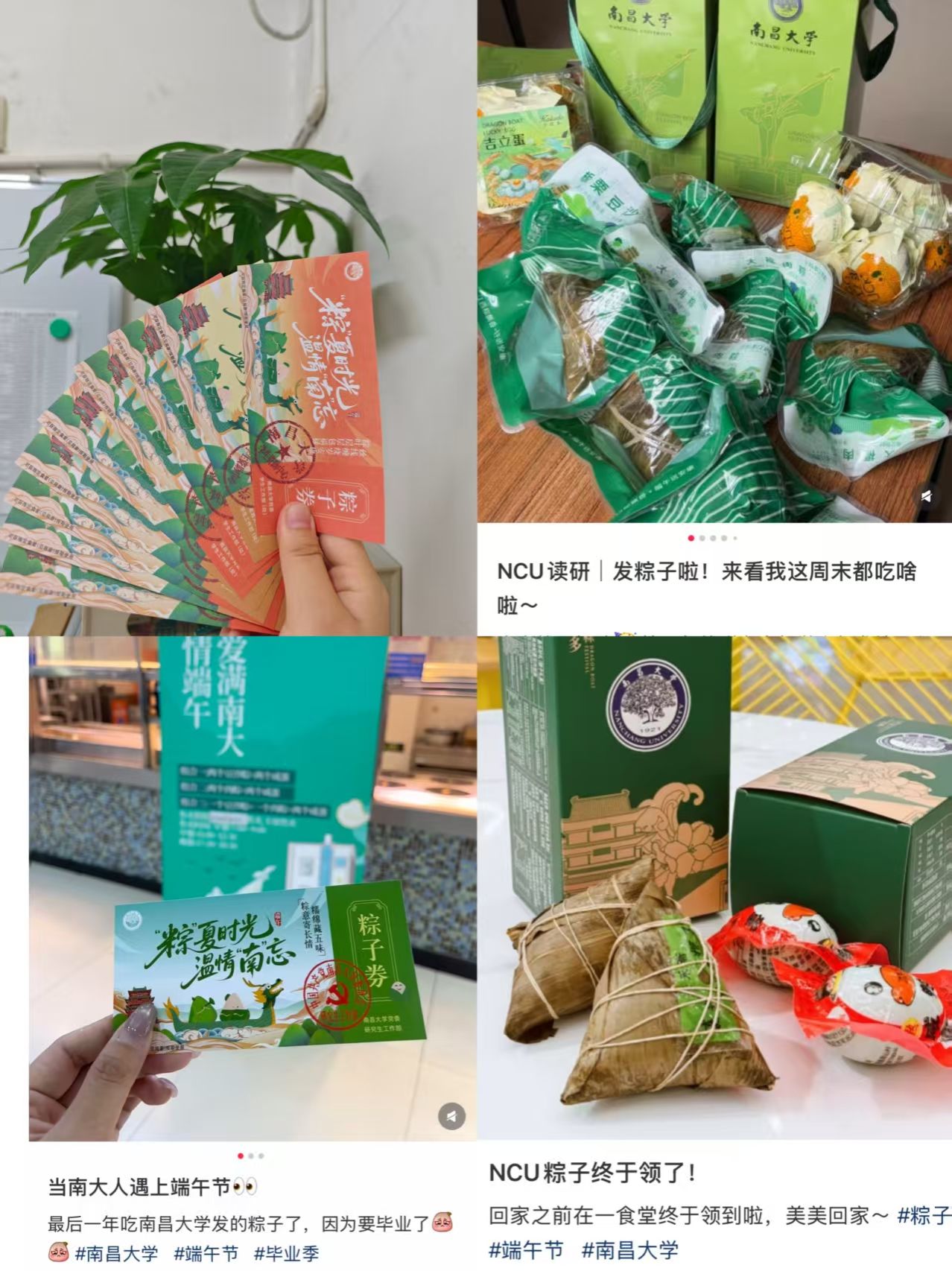 “谁家大学免费发粽子了???原来是我NCU啊!!!”“谁又成为别人家的大学,我不说。”“情绪价值拉满,中秋有月饼,端午有粽子,南昌大学也太贴心了吧!!!”为了让全体在校学生感受到学校端午节的暖心问候,学校党委行政高度重视,确定了端午慰问方案,发放了超5.5万份粽子礼盒。同学们也纷纷在朋友圈、小红书、抖音等平台对学校的“花式宠”表达欣喜与感谢。