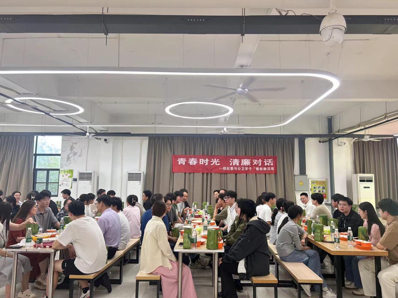 活动现场,餐桌上摆满了热气腾腾的餐食,校纪委干部与学生代表们围坐一起,以“家常饭”话“廉洁事”。“食堂的饭菜分量足吗?学习生活中有什么困难吗?”“你对身边的廉洁现象有什么观察?”……从食堂饭菜谈到学生资助的公平公正,从抵制“微腐败”谈到弘扬清风正气,在烟火气中传递廉洁理念。同学们纷纷感慨:“以前总觉得廉洁是‘大道理’,今天才发现它就藏在我们的餐盘里、生活中。”