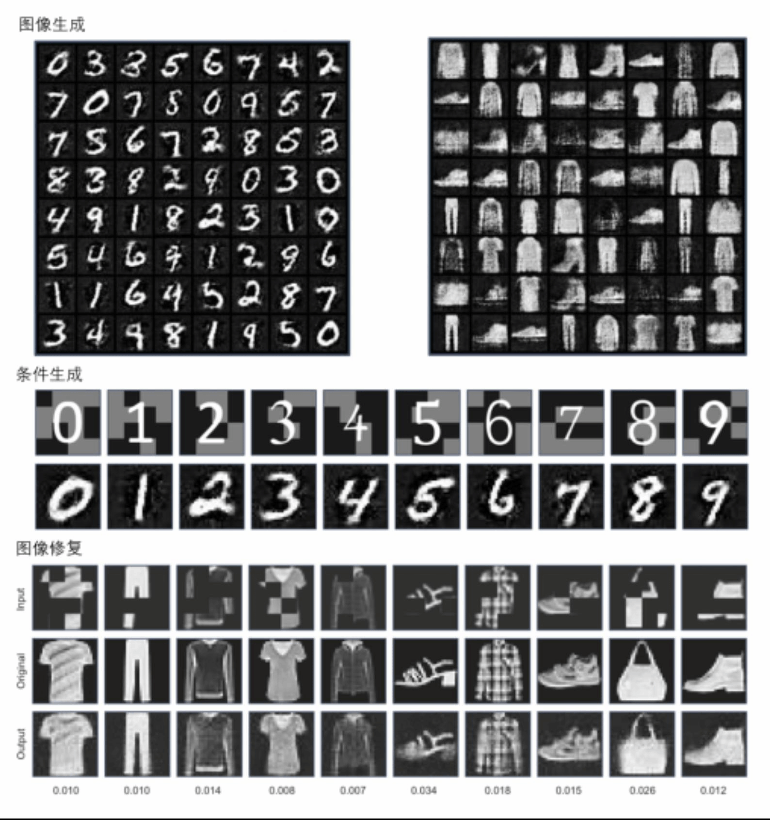 图像生成:可高效合成手写数字、服装等复杂图像;