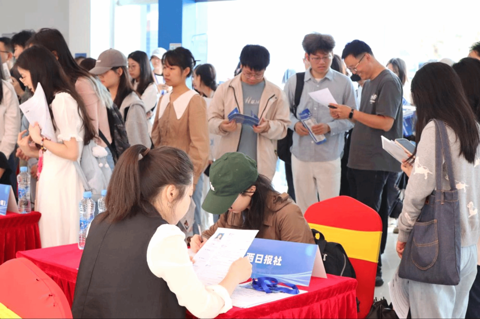 招聘会现场人头攒动、气氛热烈。毕业生们穿梭于各展位前,认真查看展板上的招聘信息,挑选着自己心仪的岗位。多家企事业单位展位前排满了前来投递简历和咨询的学生。据了解,本次招聘会吸引了32家企事业单位参与,岗位涵盖传媒、通讯、教育等多个领域,岗位种类丰富多样,充分满足不同专业学生的求职需求。