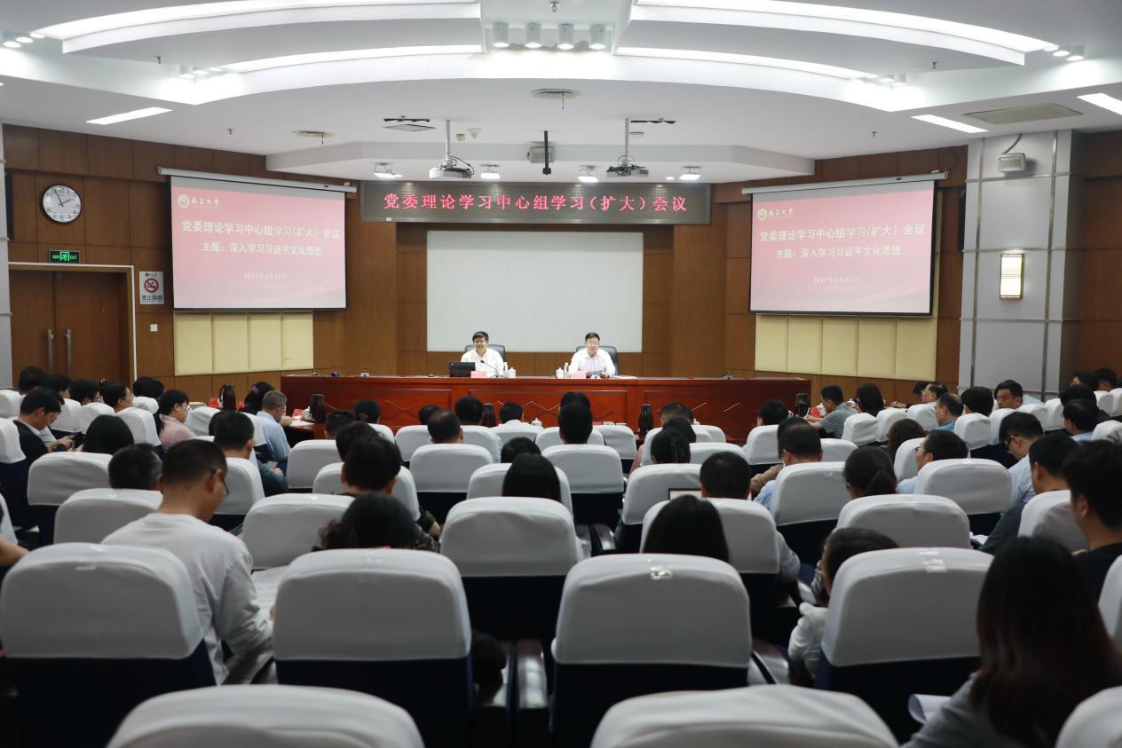 罗嗣海指出,习近平文化思想为做好新时代新征程宣传思想文化工作,担负起新时代文化使命,提供了强大思想武器和科学行动指南。全校上下要以更高站位深化理论武装,坚持把习近平文化思想贯穿办学治校全过程,发挥人文社会科学优势,形成具有南大特色的研究成果。要以更实举措推动文化育人,坚持以习近平文化思想凝心铸魂,深入实施新时代立德树人工程,引导全校教职工感悟党的创新理论的实践伟力,深入开展教育教学思想大讨论,凝练、宣传学校文化内涵和外延,树立南大人“命运共同体”意识。要以更大格局服务文明互鉴,积极投身文化传承与创新,拓宽国际视野,积极参与“一带一路”交流合作,为促进中外文明交流互鉴作出南大贡献。