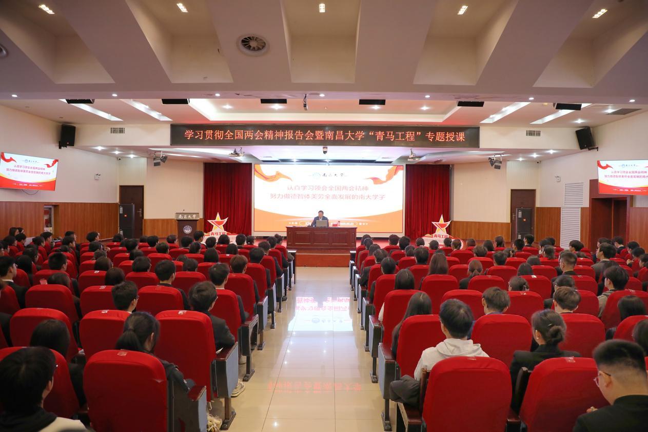 本网讯(团委)3月23日,全国人大代表、南昌大学党委书记罗嗣海为“青马工程”学员宣讲2025年全国两会精神。校党委常委、组织部部长刘建光主持报告会。