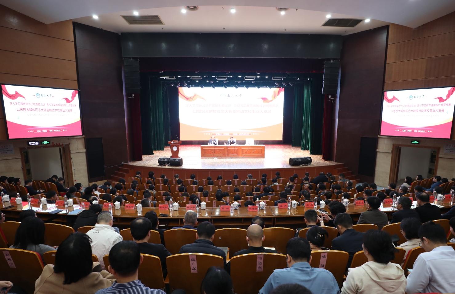 本网讯(南轩)3月21日下午,学校召开教育教学思想大讨论动员大会,校党委书记罗嗣海出席会议并作专题辅导报告,副校长葛刚主持会议。