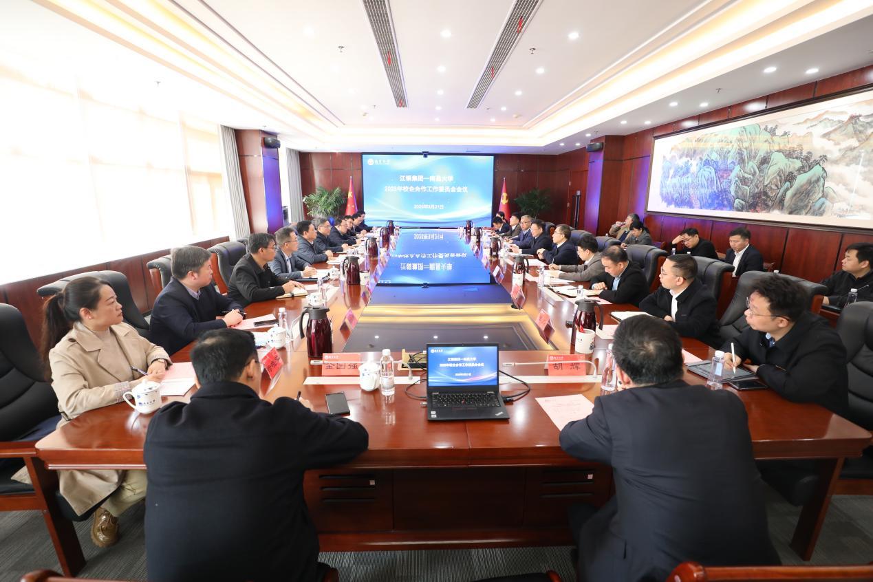 本网讯(记者朱文芳)3月21日,江铜集团—南昌大学2025年校企合作工作委员会会议在我校召开,总结回顾2024年校企合作成果,科学谋划2025年发展蓝图。江铜集团党委书记、董事长郑高清,江铜集团党委副书记、副董事长、总经理周少兵,江铜集团党委委员、副总经理涂东阳,我校党委书记罗嗣海,校长、中国科学院院士陈晔光,校党委常委、组织部部长刘建光出席会议。副校长聂少平主持会议。