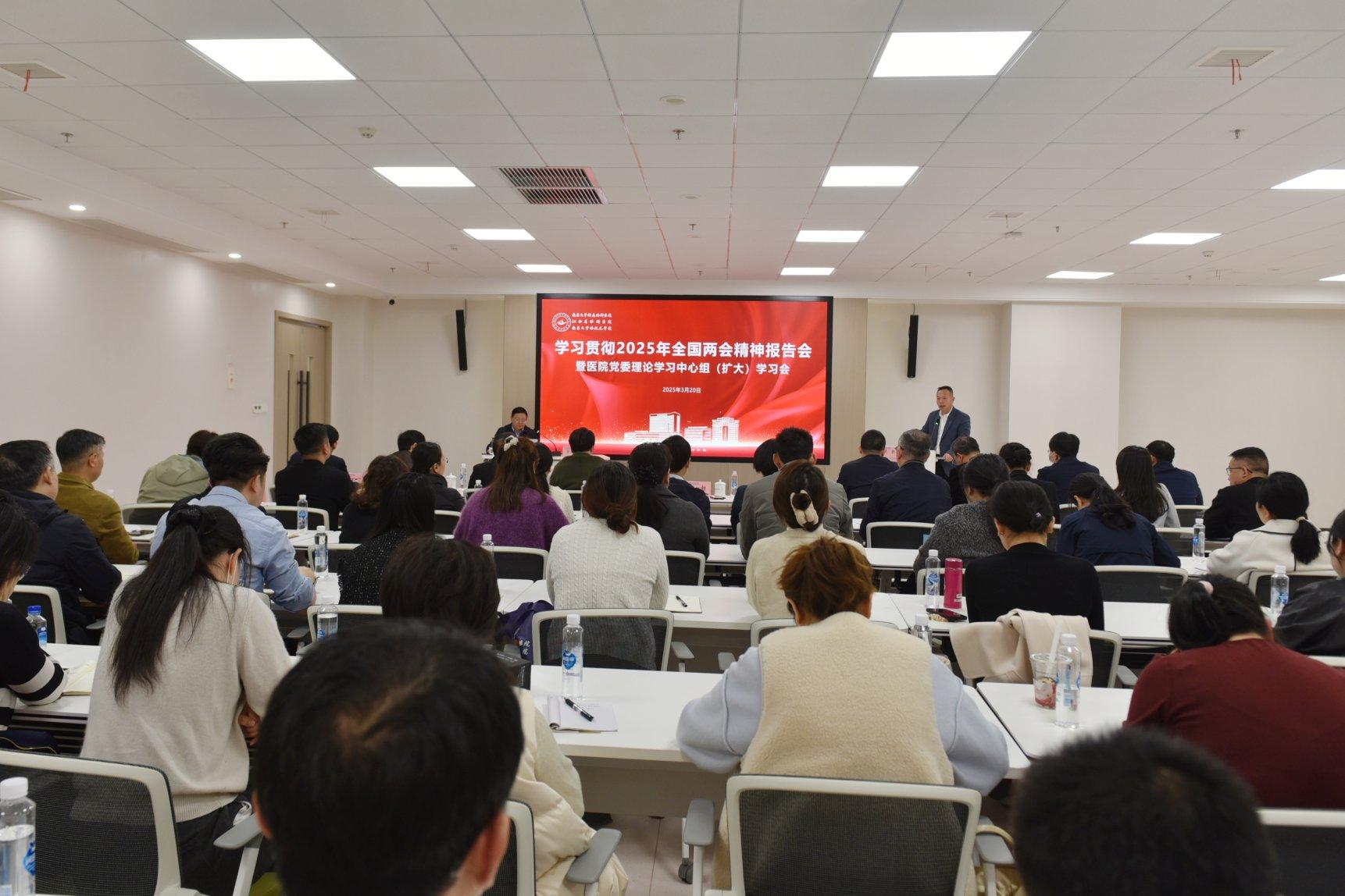 罗嗣海以《深入学习贯彻全国两会精神 遵循三位一体新部署 推动高校事业新发展》为题,围绕2025年全国两会概况、习近平总书记在全国两会期间的重要讲话精神、大会报告的主要内容、江西代表团参会情况、南昌大学代表参会情况、“三位一体”背景下推进高校及附属医院事业高质量发展等方面,结合自身参会经历,围绕全国两会精神的核心要义,紧扣教育科技人才战略部署、医疗卫生领域新政策、三位一体下高校如何创新发展、高校与附属医院如何融合发展等内容,作了一场内涵丰富、思想深刻、催人奋进的辅导报告。报告引发大家的强烈共鸣,会场多次响起热烈掌声。