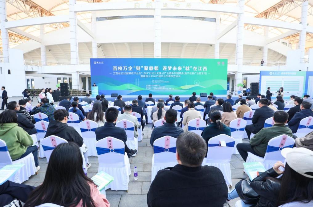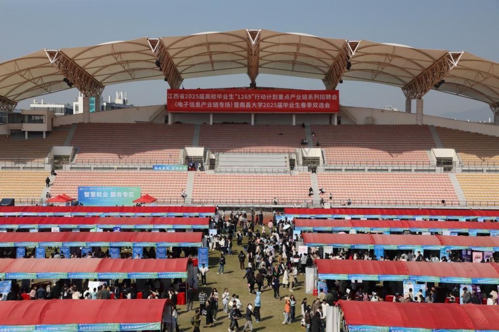 本网讯(通讯员李静)3 月 20 日上午,江西省2025届高校毕业生“1269”行动计划重点产业链系列招聘会(电子信息产业链专场)暨南昌大学2025届毕业生春季双选会在南昌大学前湖校区白帆运动场举行。