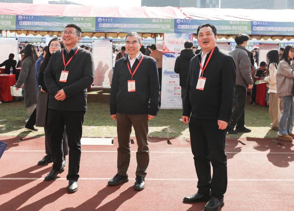 陈晔光在致辞中表示,南昌大学作为国家“双一流”建设高校、部省合建高校,秉持“汇全校之智服务江西”的理念,深度融入江西“1269”行动计划,依托八大实施方案,通过成立校企创新联合体、创新人才培养模式等举措,深化校政企合作,助力产业链和人才链的紧密对接。希望广大毕业生抢抓春招机遇期,珍惜就业机会,与用人单位尽早实现“双向奔赴”。