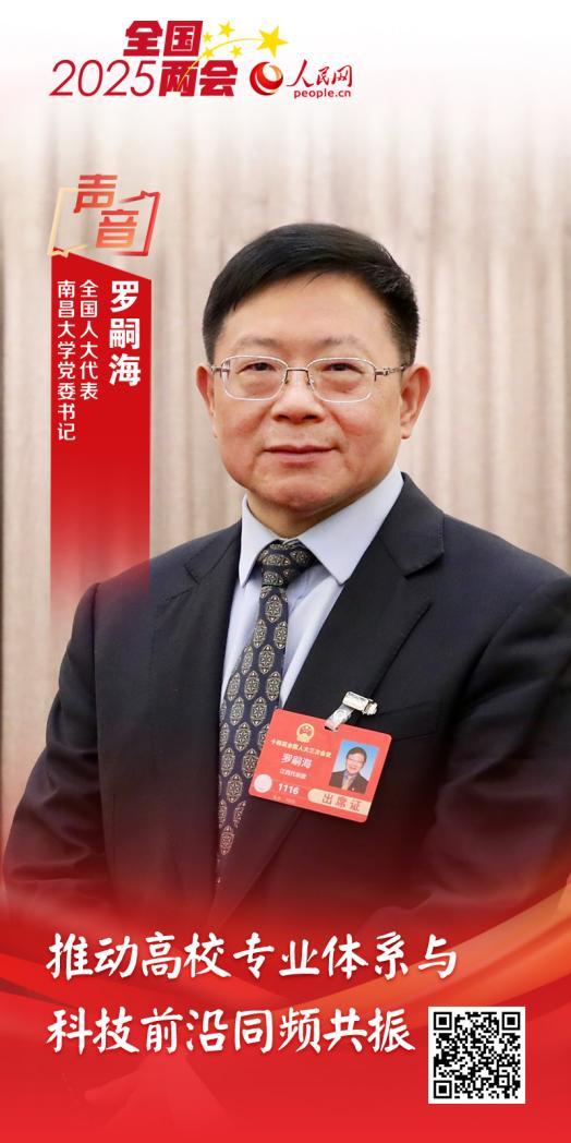 编者按:3月9日,人民网以《全国人大代表、南昌大学党委书记罗嗣海——推动高校专业体系与科技前沿同频共振》为题,报道全国人大代表、我校党委书记罗嗣海在接受人民网记者采访时表示,高校要落实教育、科技、人才“三位一体”战略布局,积极调整学科结构,推进产教融合,强化科研攻关,实现创新发展。详情如下: