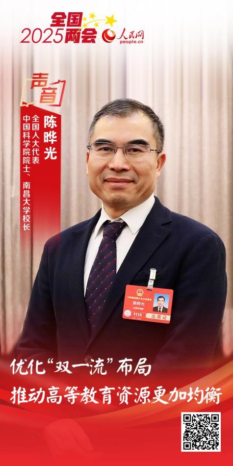 编者按:3月9日,人民网以《全国人大代表、中国科学院院士、南昌大学校长陈晔光——优化“双一流”布局 推动高等教育资源更加均衡》为题,报道全国人大代表、中国科学院院士、南昌大学校长陈晔光在接受人民网记者采访时介绍我校在推动科技创新与产业创新深度融合方面的举措成效,并围绕教育和科技水平相对落后地区,在人才培养和引进、重大科研平台建设、科技引领新质生产力发展等方面如何发力提出建议。详情如下: