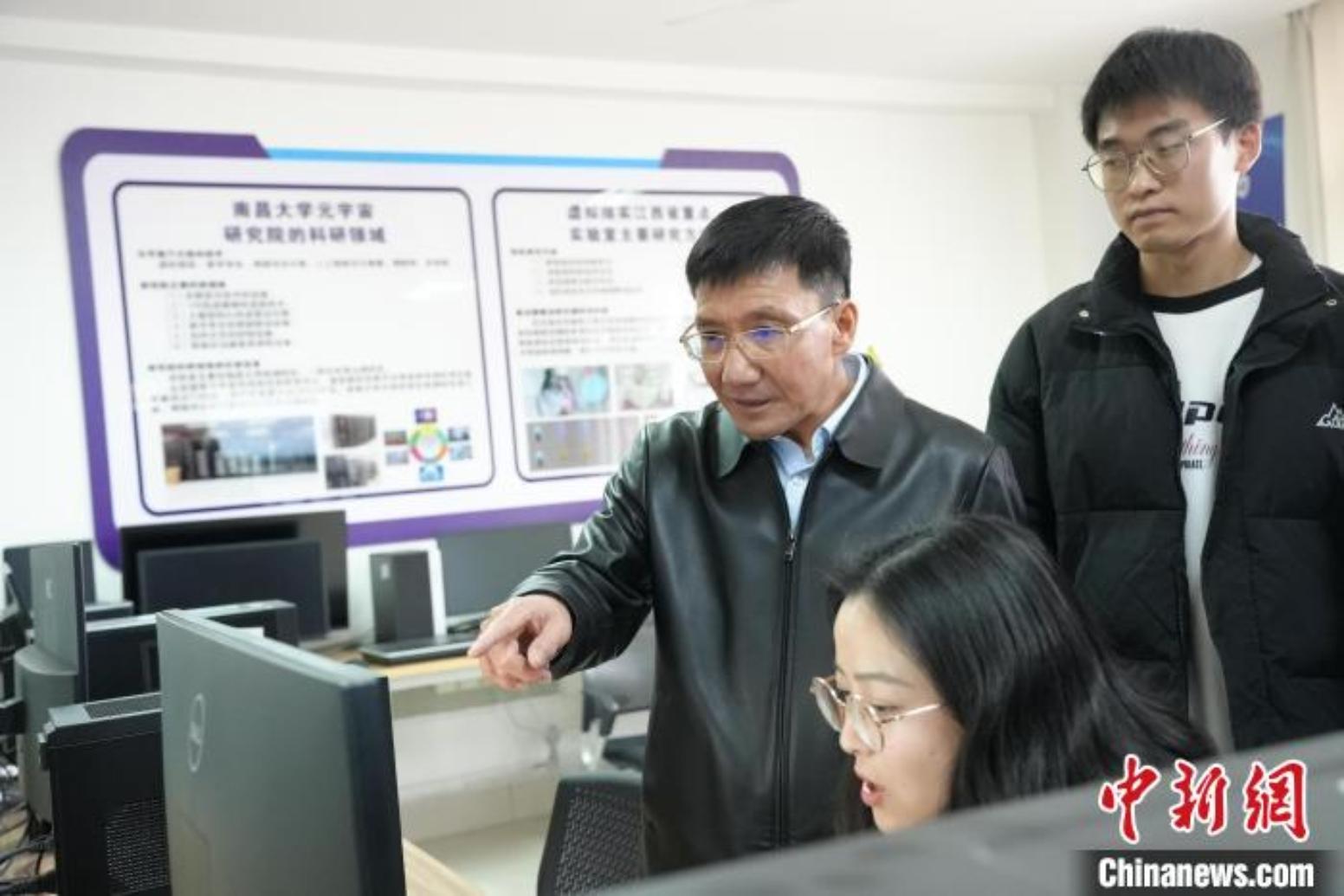 2月27日,全国人大代表闵卫东正在南昌大学元宇宙研究院内指导学生论文。吴敏 摄