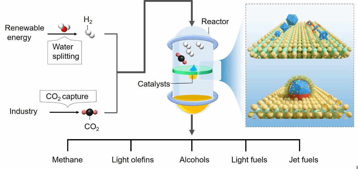 CO₂催化加氢可以利用废弃CO₂合成附加值化学品,包括C₁产物(如CO、CH4、CH3OH)和C2+产物(如低碳烯烃、乙醇、汽油等),具有重要的工业应用前景。然而,由于加氢混合物产物的分离成本较高,因此产物的高选择性是实现工艺经济性的关键问题之一。由于CO₂加氢反应网络复杂,且催化剂表面存在多种活性位点,产物的选择性调控仍面临挑战。叶闰平教授长期从事多相催化加氢研究,在前期CO₂加氢研究工作的基础上(Angew 2024, 136, e2023176; Nat. Commun., 2024, 15, 2159; Appl. Catal. B, 2020, 268, 118474; Nat. Commun., 2019, 10, 5698),针对如何理性设计催化剂用于调控CO₂加氢产物选择性这一关键科学问题,首先归纳总结了经典的CO₂加氢合成反应路径,为催化剂的原子尺度设计提供启示,重点讨论了催化剂的理性设计原则,包括从催化剂活性中心的化学状态、尺寸大小、晶相效应、协同效应和结构性质等角度进行催化剂设计,用于CO₂加氢产物选择性调控,在此基础上,从催化反应工程角度阐述了调控CO₂加氢选择性的方法,最后探讨了该领域面临的挑战和展望,为原子尺度上设计高效加氢催化剂提供理论指导,对助力实现碳中和具有重要意义。