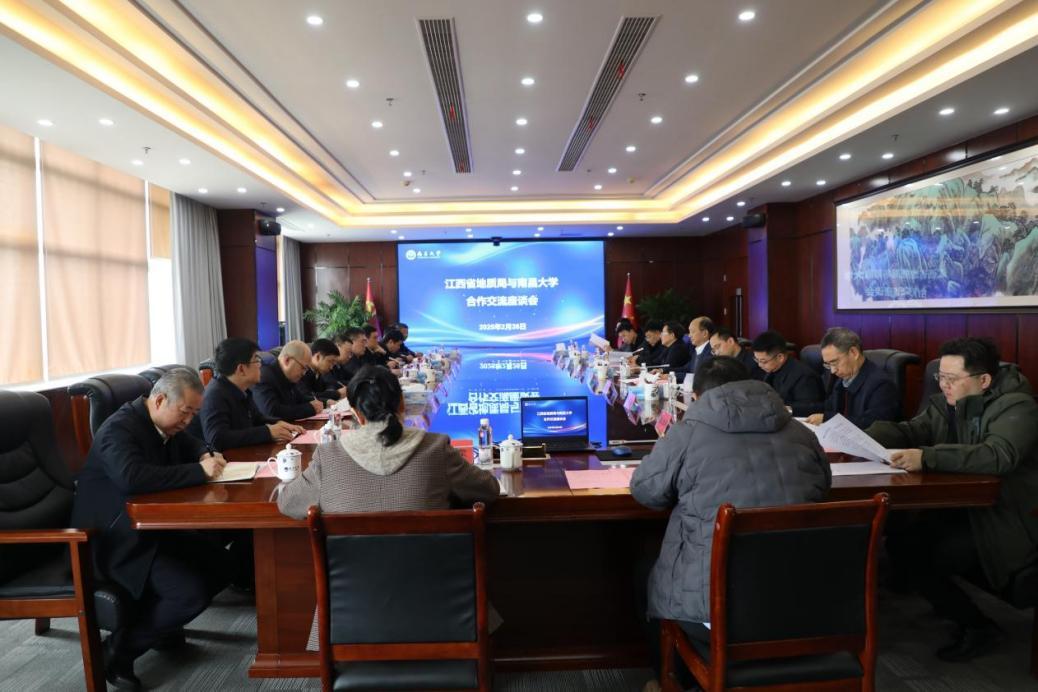 江西省地质局相关处室负责人,学校党委办公室、校长办公室、部省合建与国内合作办公室、科学技术处、社会科学处、科技园、旅游学院、食品学院、资源与环境学院、工程建设学院、江西生态文明研究院等单位负责人参加座谈。