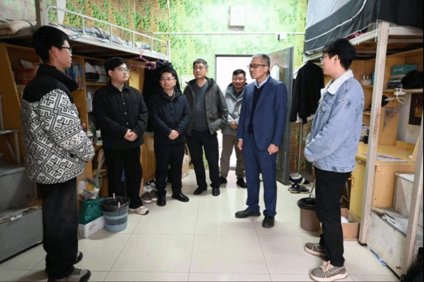 在学生宿舍,聂少平与同学们亲切交流,关心他们的假期生活、学习状态、宿舍生活情况,对宿舍的安全、卫生等方面提出要求,并鼓励同学们在新学期以饱满的热情投入学习中,明确目标,努力提升自己。