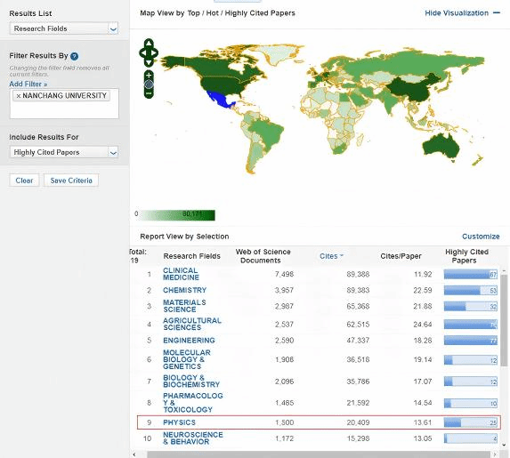 本网讯(物理与材料学院)近日,Web of Science发布了最新的Essential Science Indicators (ESI)排名。我校物理与材料学院的物理(PHYSICS)学科共收录论文1500篇,总被引次数20409次,跻身全球前1%,标志着我校基础学科建设又获新突破。