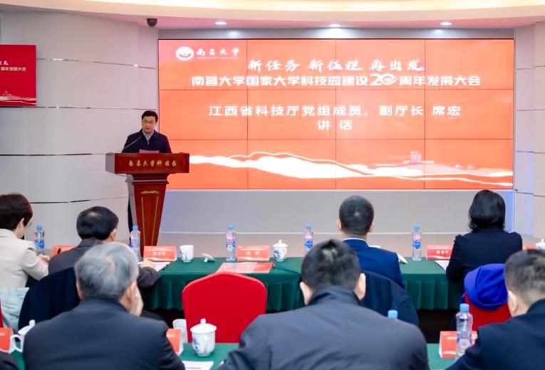 本网讯(国家大学科技园 胡燕)二十载风雨兼程谱华章,新征程砥砺奋进再出发。12月18日,南昌大学国家大学科技园建设二十周年发展大会举行。工业和信息化部火炬高技术产业开发中心党委书记、主任吕先志,江西省科技厅党组成员、副厅长席宏,江西省教育厅二级巡视员杨春年,江西省科学院副院长刘洁,南昌大学党委书记罗嗣海,副校长涂宗财,原副校长邓晓华、刘成梅通过线上线下方式出席会议。