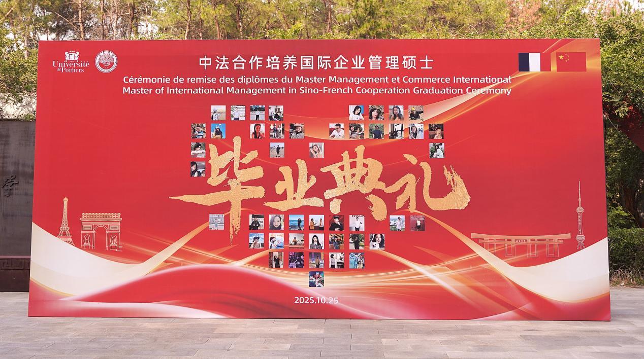 王立在致辞中表示,同学们顺利完成学业是两年来不懈努力、勤奋钻研的成果,也是中法双方教师辛勤教导、智慧耕耘的结晶,更是南昌大学与普瓦提埃大学长期友好合作的生动体现。自1997年起,两校长期合作,致力于培养具备国际视野与跨文化能力的高层次人才。毕业生通过两年学习,夯实专业基础,提升综合素养,成为中法交流的桥梁。希望同学们永葆求知热情,善用跨文化优势,将个人理想融入国家发展与人类进步事业,在未来职业道路上绽放光彩。