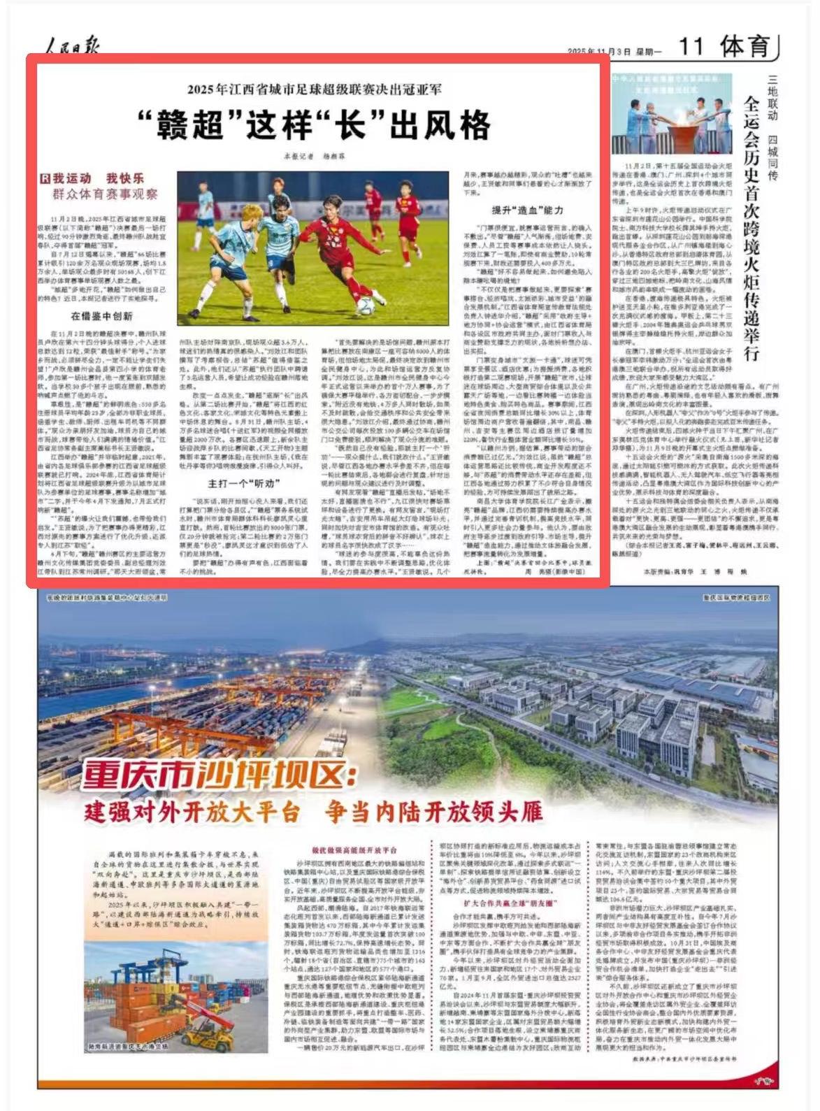 编者按:11月3日,《人民日版》刊发题为《“赣超”这样“长”出风格》的文章,其中,我校体育学院院长江广金受邀发表关于擦亮“赣超”品牌的相关观点,详情如下: