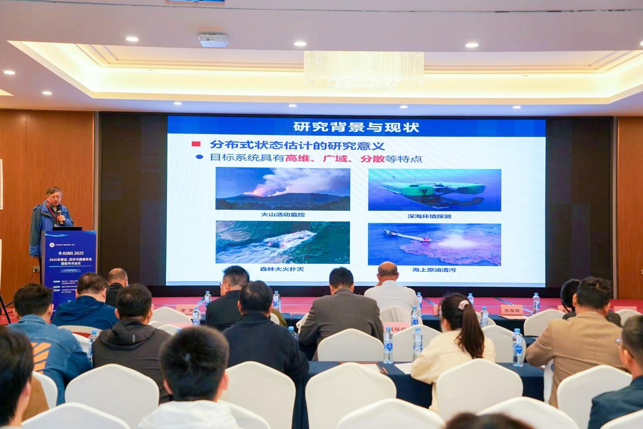华中科技大学苏厚胜教授、中南大学夏佳志教授等国内知名学者作主旨报告,涵盖“多智能体系统分布式状态估计”“基于参数化非线性降维的高维数据可视化技术”等前沿领域。与会人员踊跃提问交流,会场气氛热烈。出席嘉宾为报告人颁发证书。