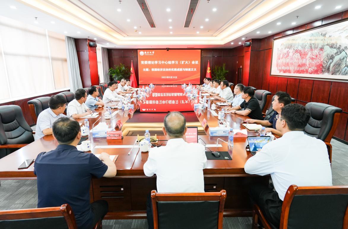 罗嗣海指出,习近平经济思想体系完备、内涵丰富,是引领我国经济高质量发展的科学指南,其中的重要论断科学揭示了法治与经济的辩证关系,确立了法治在经济建设中的根本保障地位。要深刻理解在习近平经济思想和习近平法治思想指引下推进经济法治建设的时代意义,以高度的政治自觉、思想自觉、行动自觉,不断提升依法治校水平,增强服务国家重大需求的能力,将学习成果转化为推进学校“双一流”建设和高质量发展的内生动力。