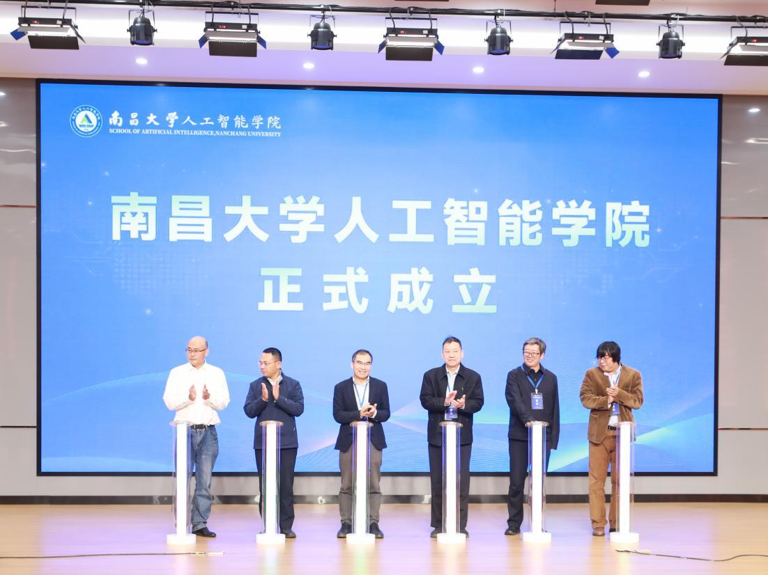钱德沛、郭雷、樊文飞、陈晔光、刘小强、马帅共同为“南昌大学人工智能学院”揭牌。